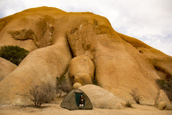 Dan rijden we oostwaarts door Damaraland naar de grote, 1728m- en de kleine 1580m Spitzkoppe. Dit is een opvallende granietkoepel. De graniet formaties tussen de twee bergen hebben soms hele mooie vormen.